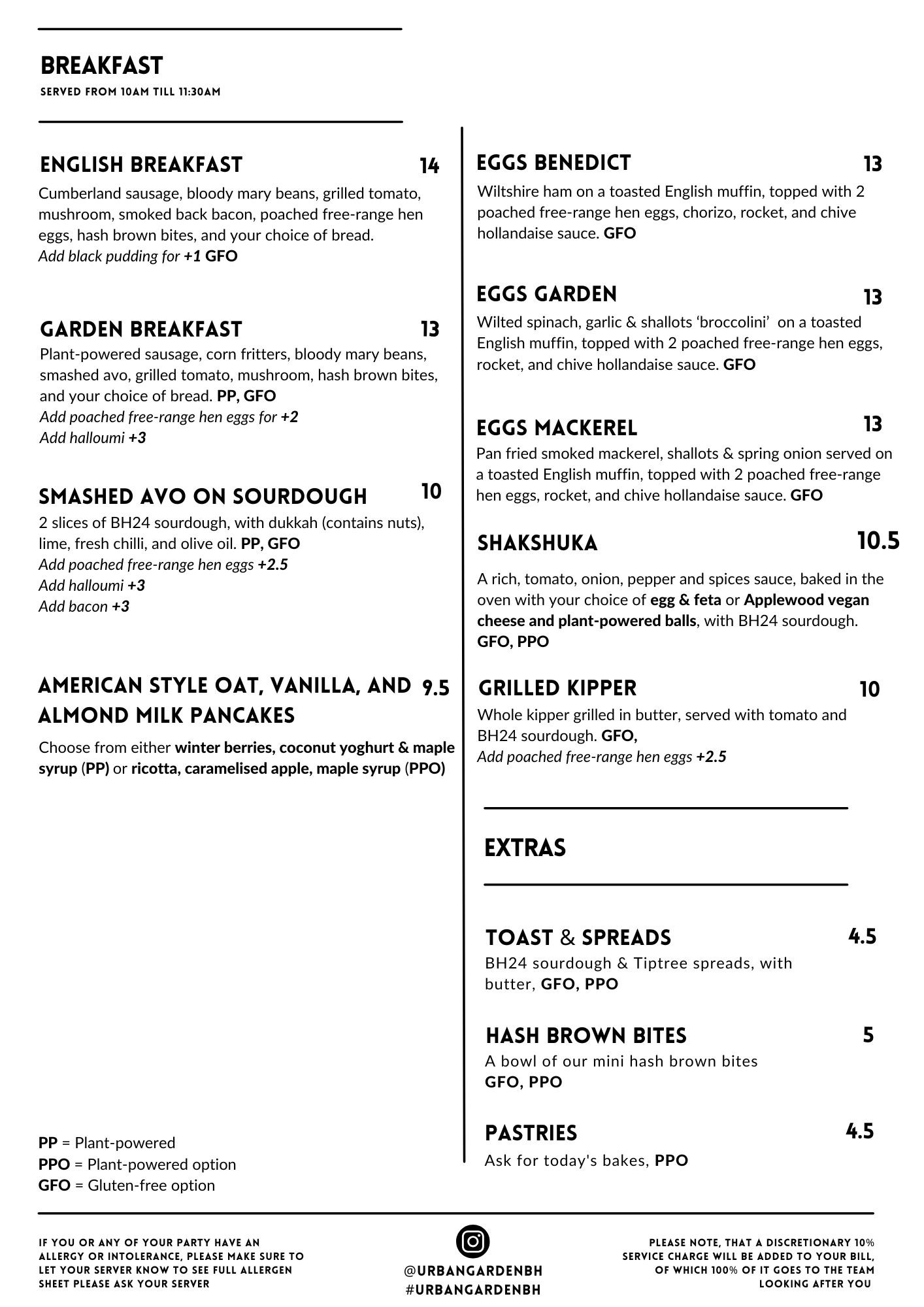 Breakfast menu served from 10am until 11:30am
